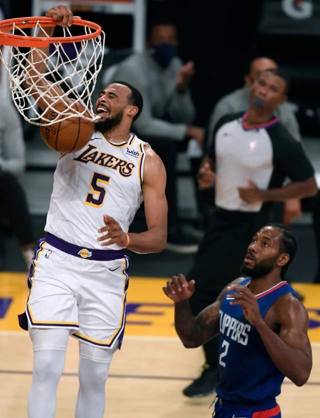 反观卡鲁索,后者是16年的落选秀,1.96米的身高,搭配2.03米的臂展,身板相对单薄,是湖人夺冠拼图之一,20-21赛季,他场均能得到6.4分,2.9个篮板,2.8次助攻。